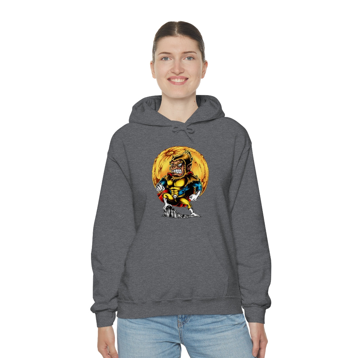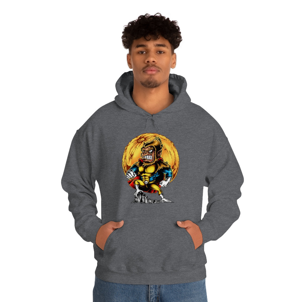 This unisex heavy blend hooded sweatshirt is relaxation itself. Made with a thick blend of cotton and polyester, it feels plush, soft and warm, a perfect choice for any cold day. In the front, the spacious kangaroo pocket adds daily practicality while the hood's drawstring is the same color as the base sweater for extra style points.