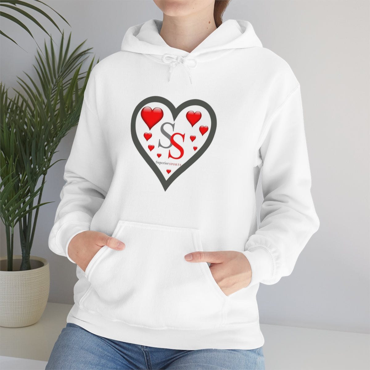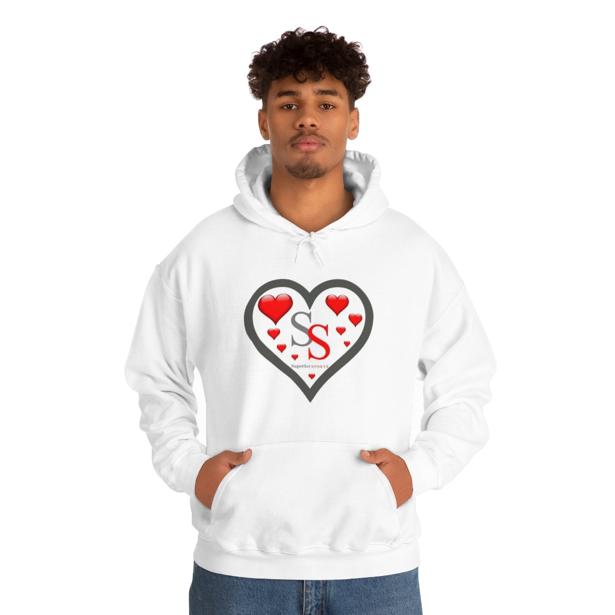 This unisex heavy blend hooded sweatshirt is relaxation itself. Made with a thick blend of cotton and polyester, it feels plush, soft and warm, a perfect choice for any cold day. In the front, the spacious kangaroo pocket adds daily practicality while the hood's drawstring is the same color as the base sweater for extra style points.