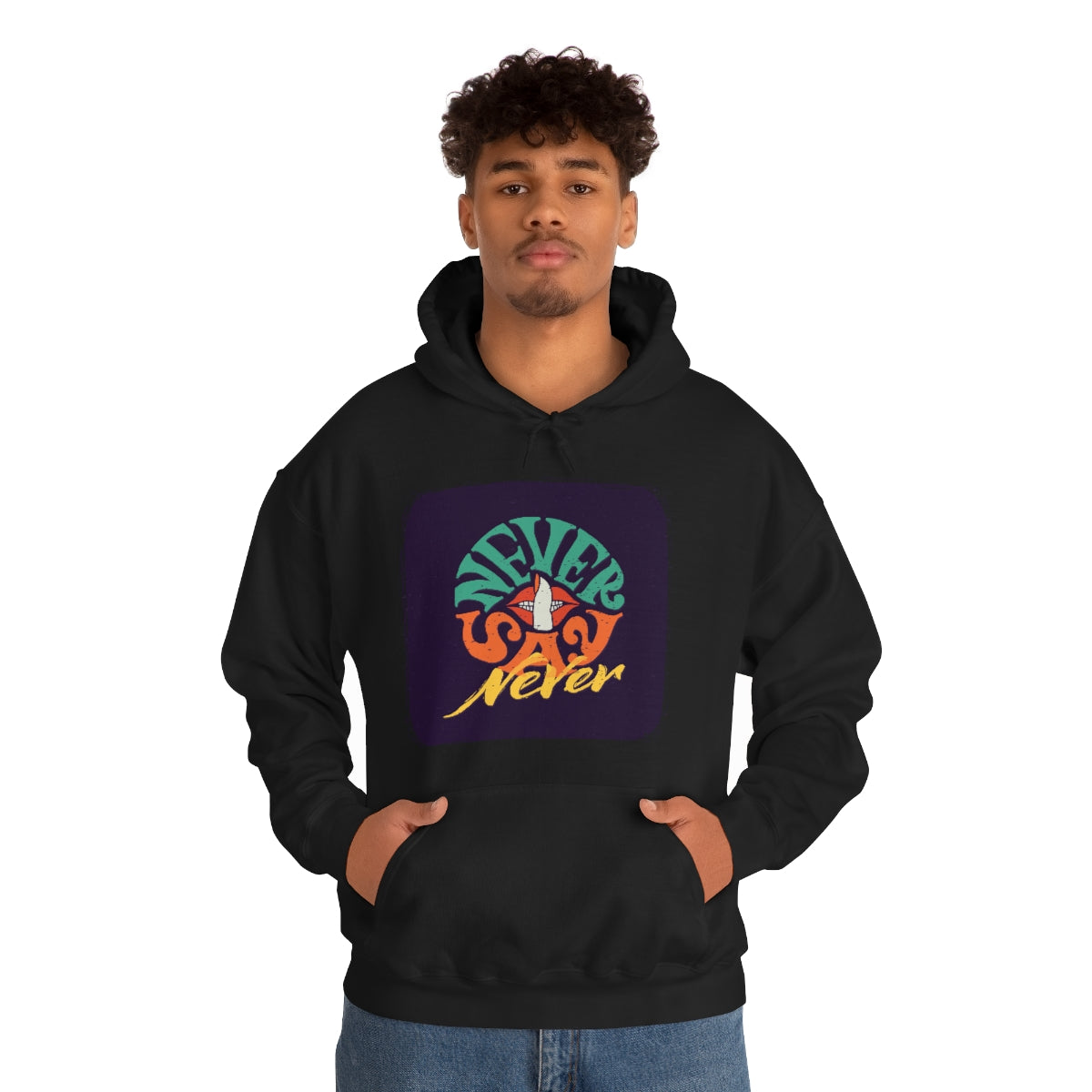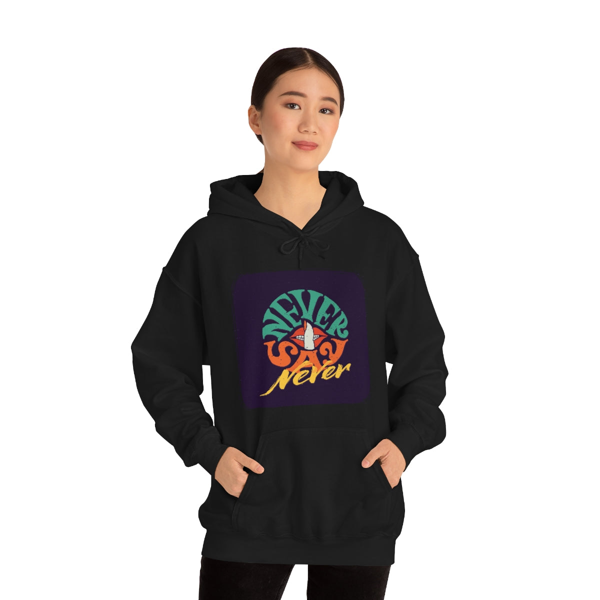 This unisex heavy blend hooded sweatshirt is relaxation itself. Made with a thick blend of cotton and polyester, it feels plush, soft and warm, a perfect choice for any cold day. In the front, the spacious kangaroo pocket adds daily practicality while the hood's drawstring is the same color as the base sweater for extra style points.