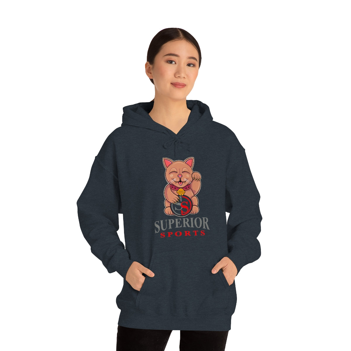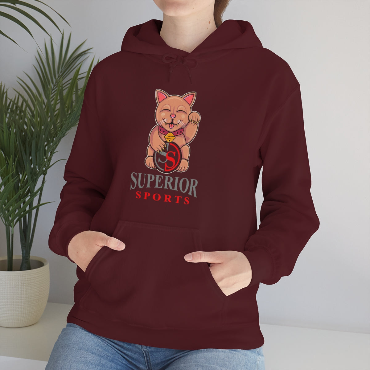 This unisex heavy blend hooded sweatshirt is relaxation itself. Made with a thick blend of cotton and polyester, it feels plush, soft and warm, a perfect choice for any cold day. In the front, the spacious kangaroo pocket adds daily practicality while the hood's drawstring is the same color as the base sweater for extra style points.