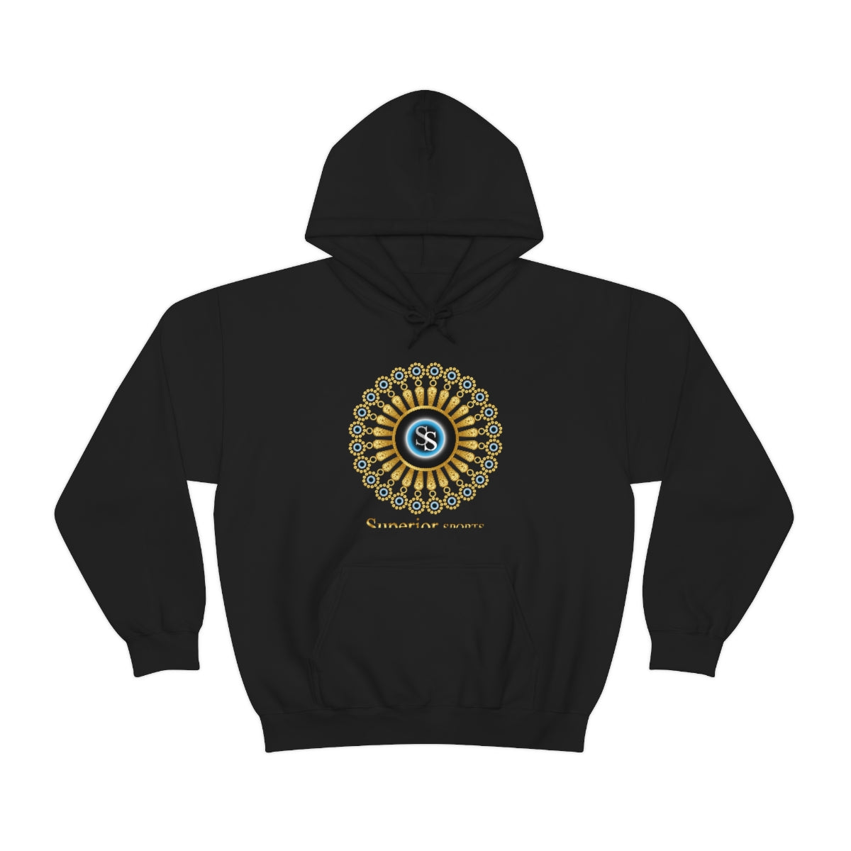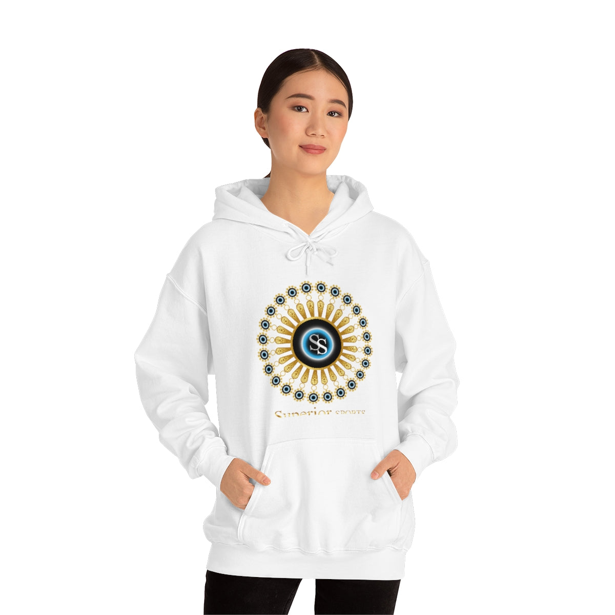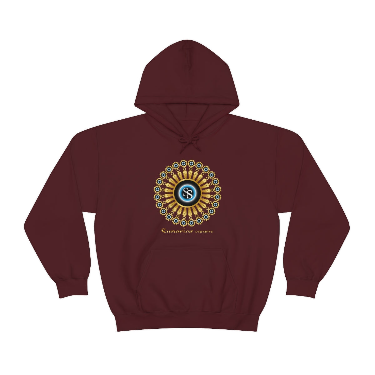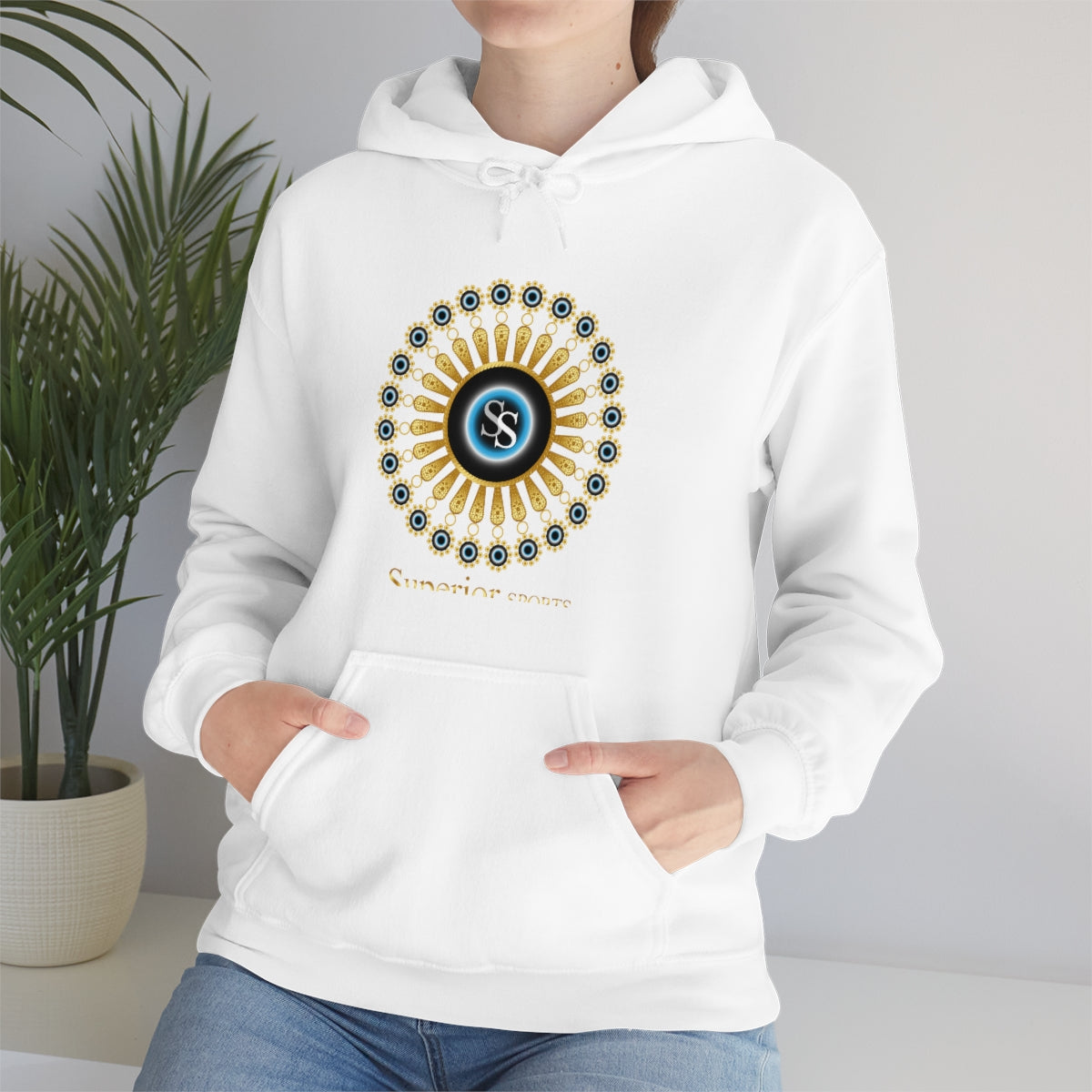 This unisex heavy blend hooded sweatshirt is relaxation itself. Made with a thick blend of cotton and polyester, it feels plush, soft and warm, a perfect choice for any cold day. In the front, the spacious kangaroo pocket adds daily practicality while the hood's drawstring is the same color as the base sweater for extra style points.