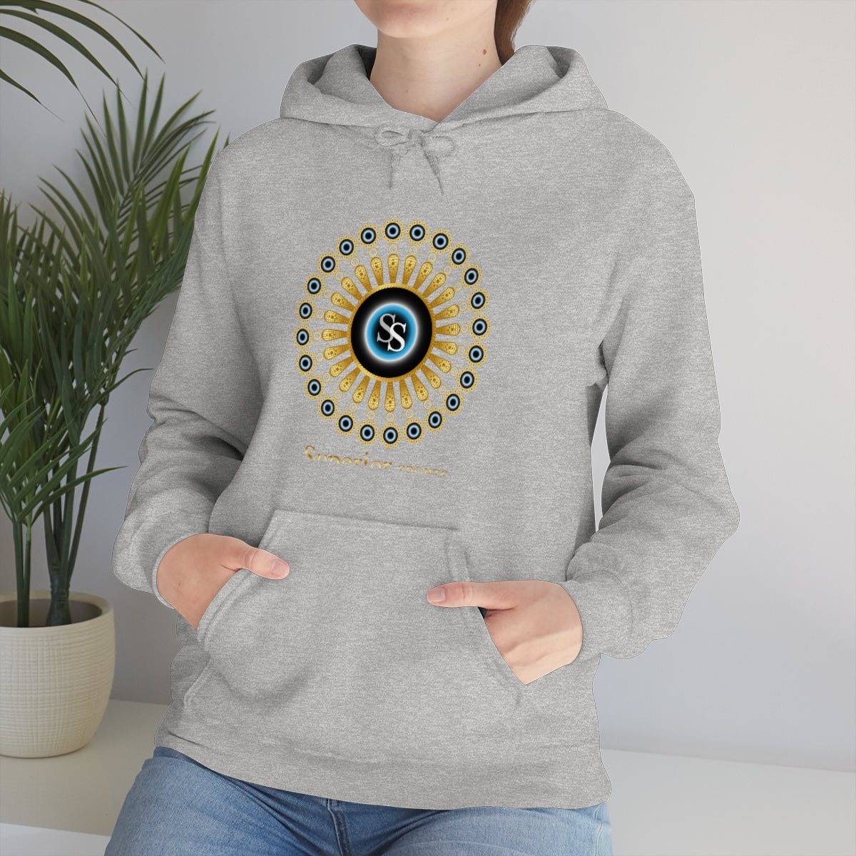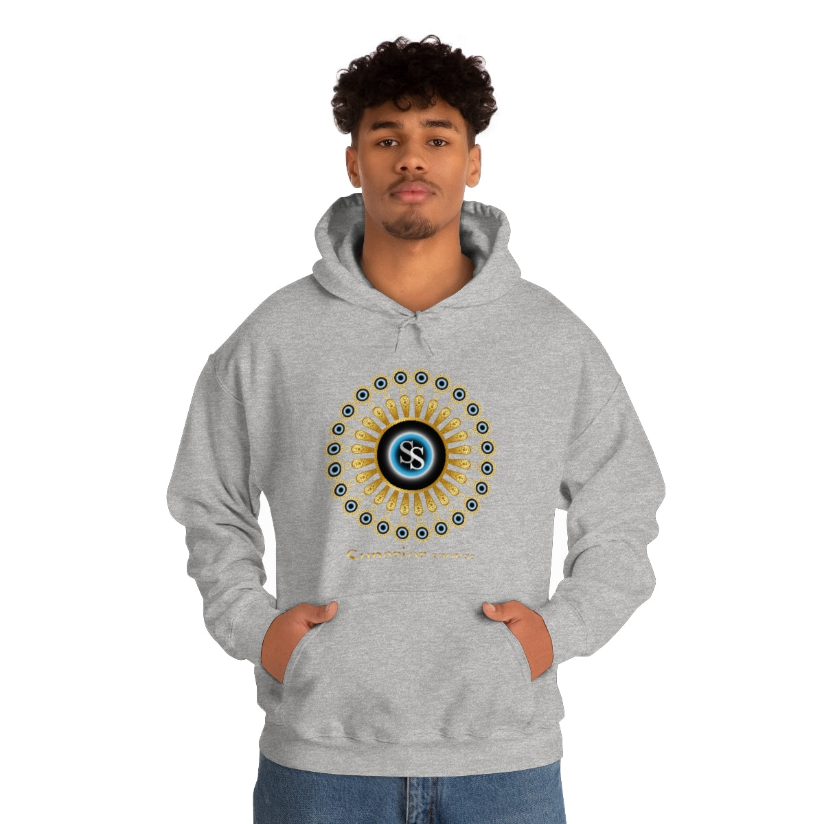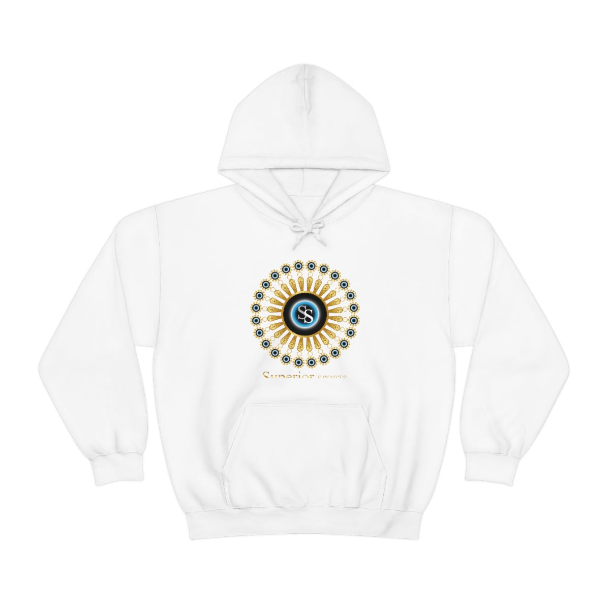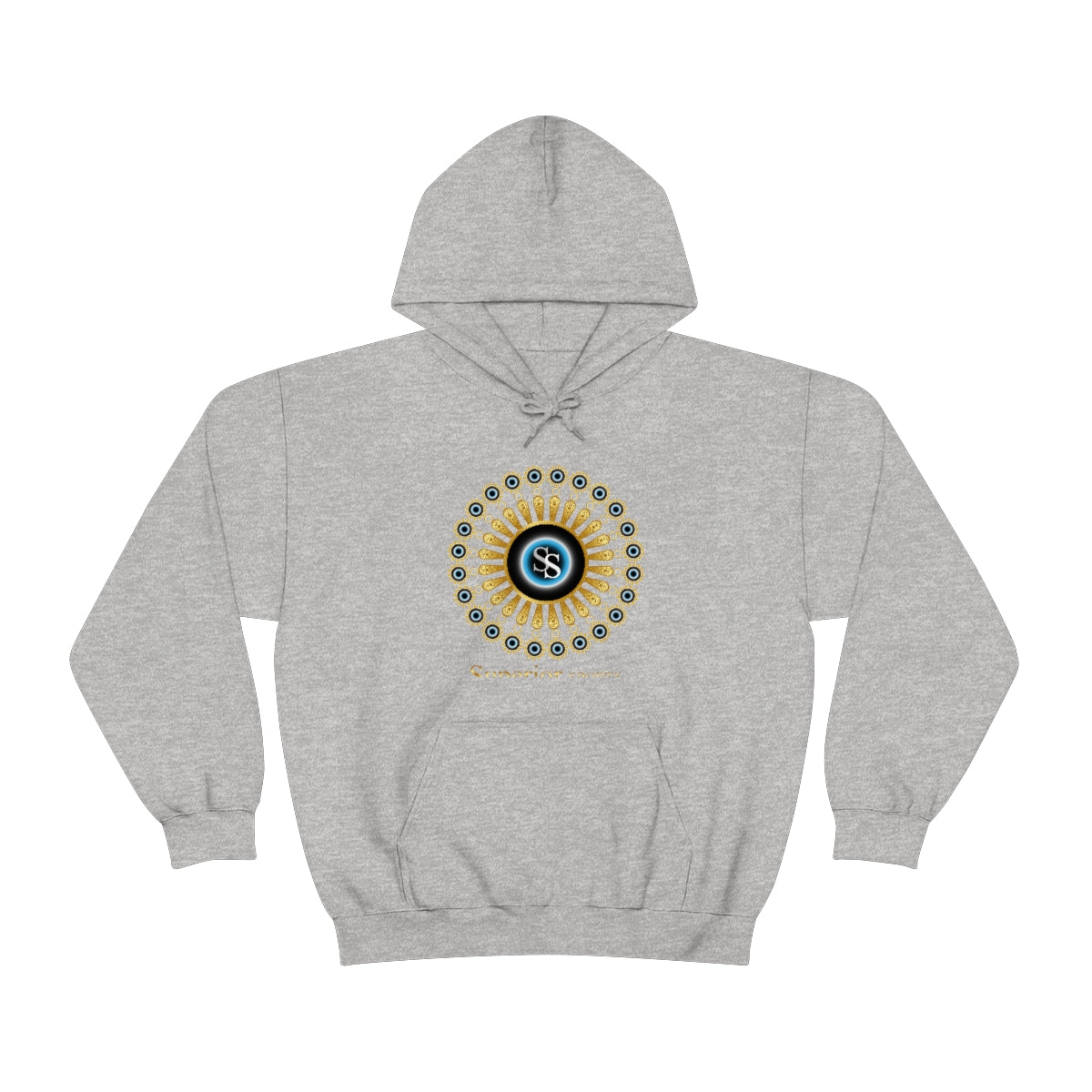 This unisex heavy blend hooded sweatshirt is relaxation itself. Made with a thick blend of cotton and polyester, it feels plush, soft and warm, a perfect choice for any cold day. In the front, the spacious kangaroo pocket adds daily practicality while the hood's drawstring is the same color as the base sweater for extra style points.