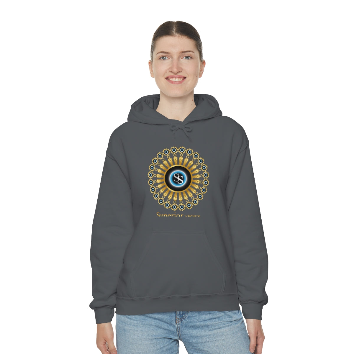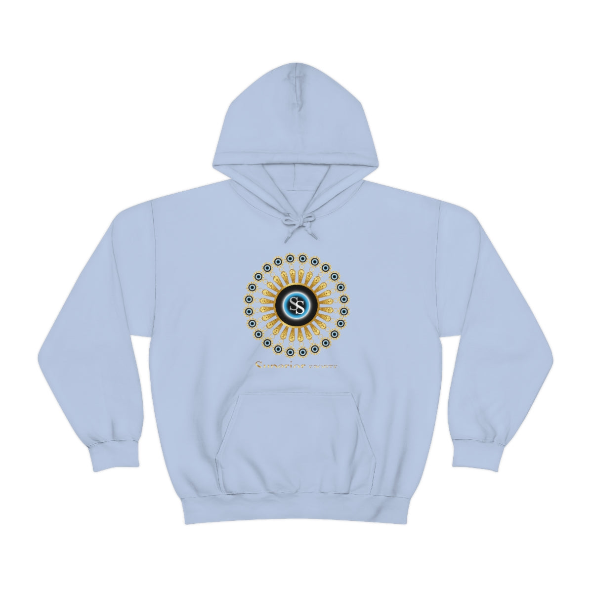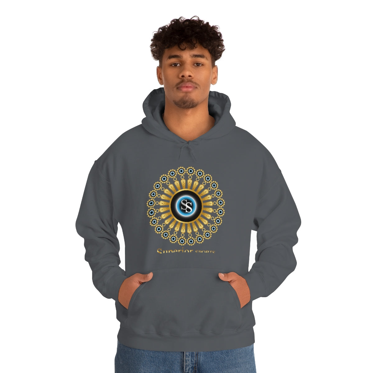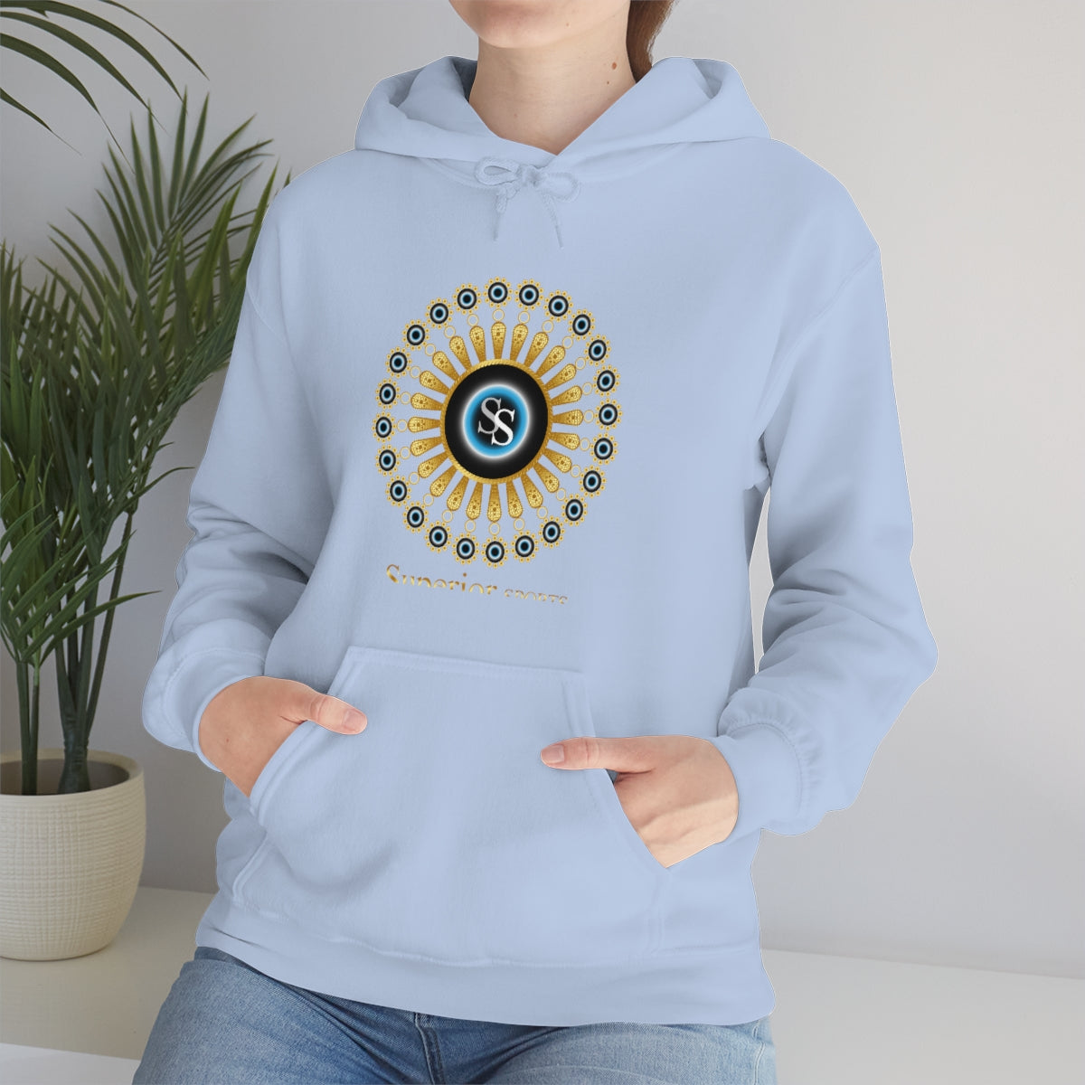 This unisex heavy blend hooded sweatshirt is relaxation itself. Made with a thick blend of cotton and polyester, it feels plush, soft and warm, a perfect choice for any cold day. In the front, the spacious kangaroo pocket adds daily practicality while the hood's drawstring is the same color as the base sweater for extra style points.