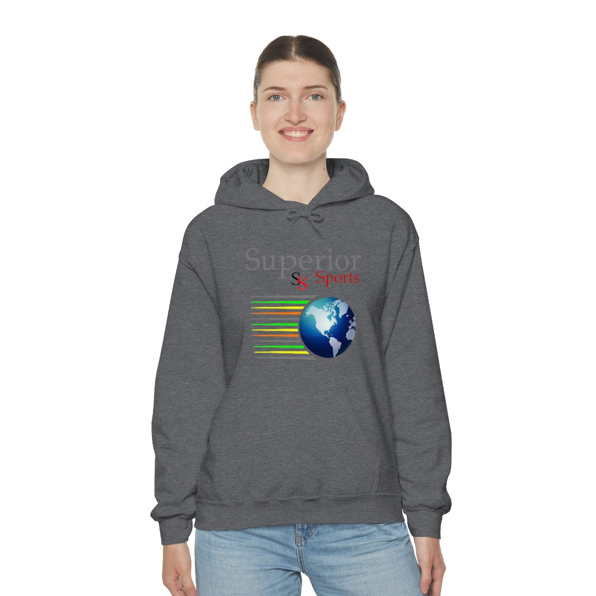 This unisex heavy blend hooded sweatshirt is relaxation itself. Made with a thick blend of cotton and polyester, it feels plush, soft and warm, a perfect choice for any cold day. In the front, the spacious kangaroo pocket adds daily practicality while the hood's drawstring is the same color as the base sweater for extra style points.
