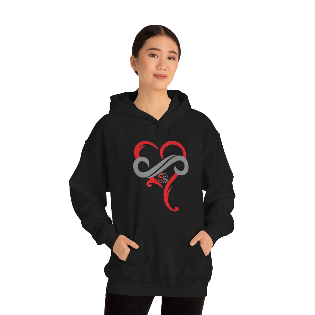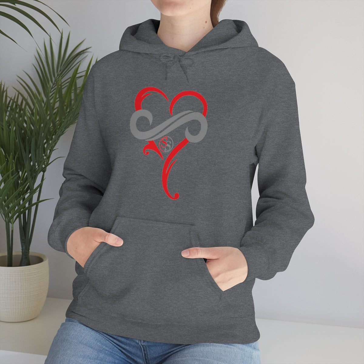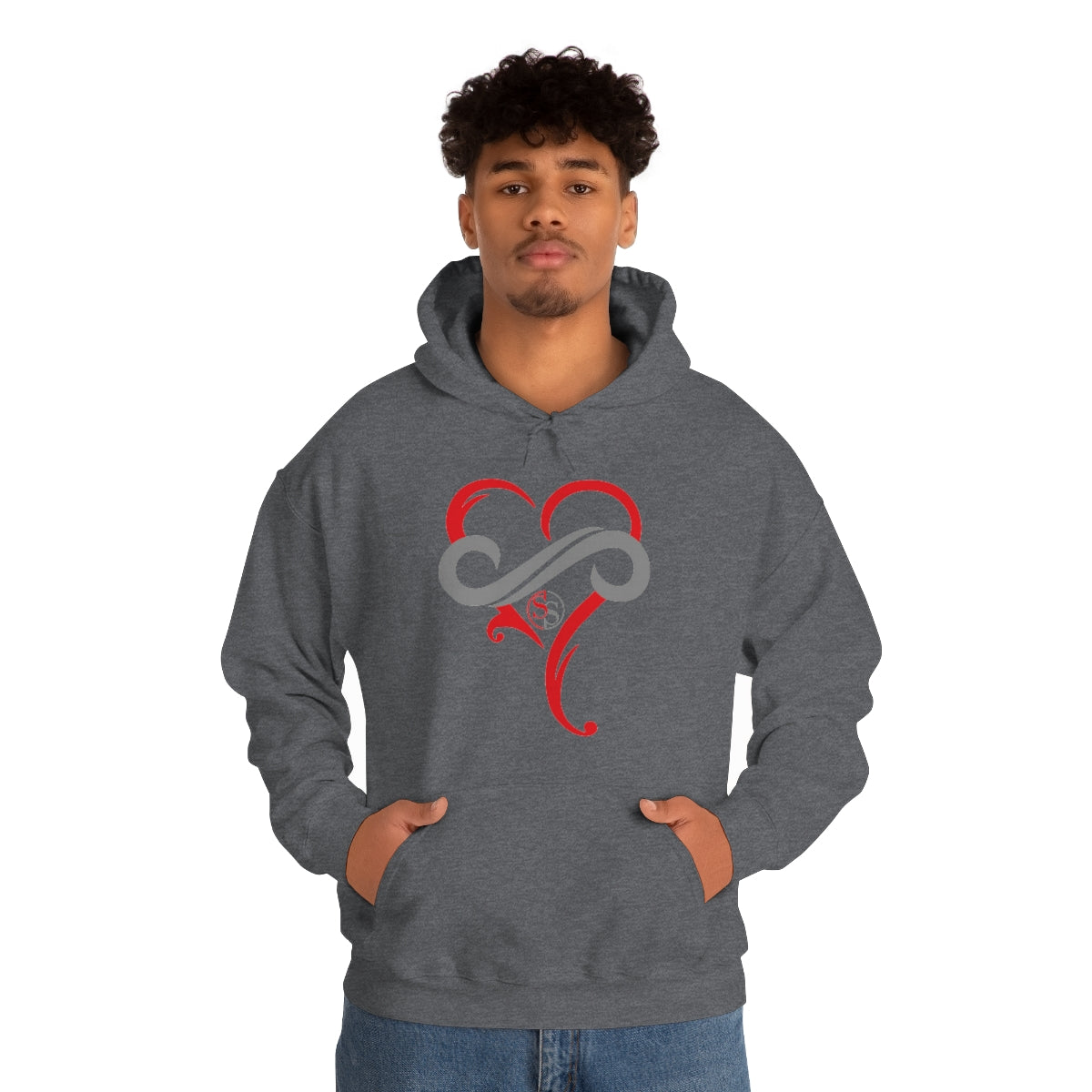 This unisex heavy blend hooded sweatshirt is relaxation itself. Made with a thick blend of cotton and polyester, it feels plush, soft and warm, a perfect choice for any cold day. In the front, the spacious kangaroo pocket adds daily practicality while the hood's drawstring is the same color as the base sweater for extra style points.