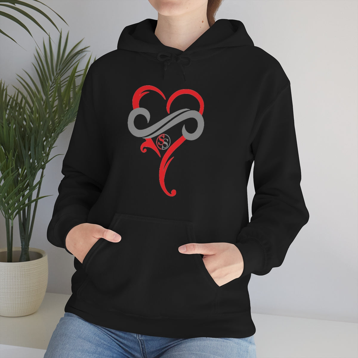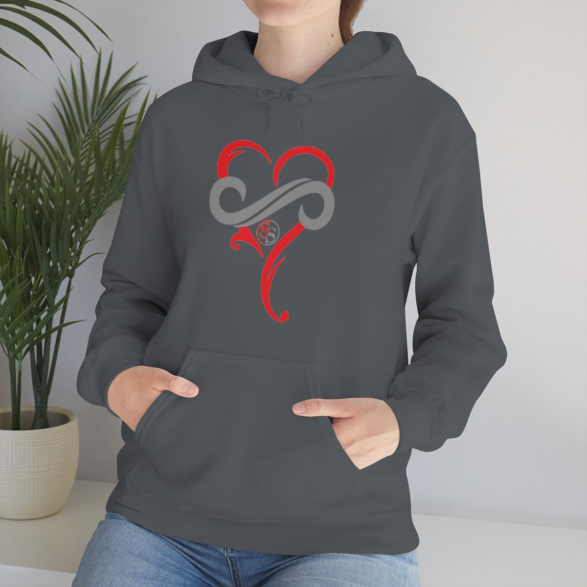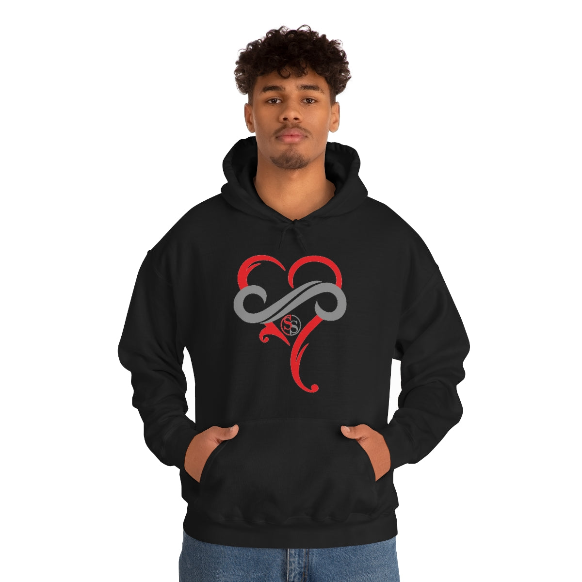 This unisex heavy blend hooded sweatshirt is relaxation itself. Made with a thick blend of cotton and polyester, it feels plush, soft and warm, a perfect choice for any cold day. In the front, the spacious kangaroo pocket adds daily practicality while the hood's drawstring is the same color as the base sweater for extra style points.