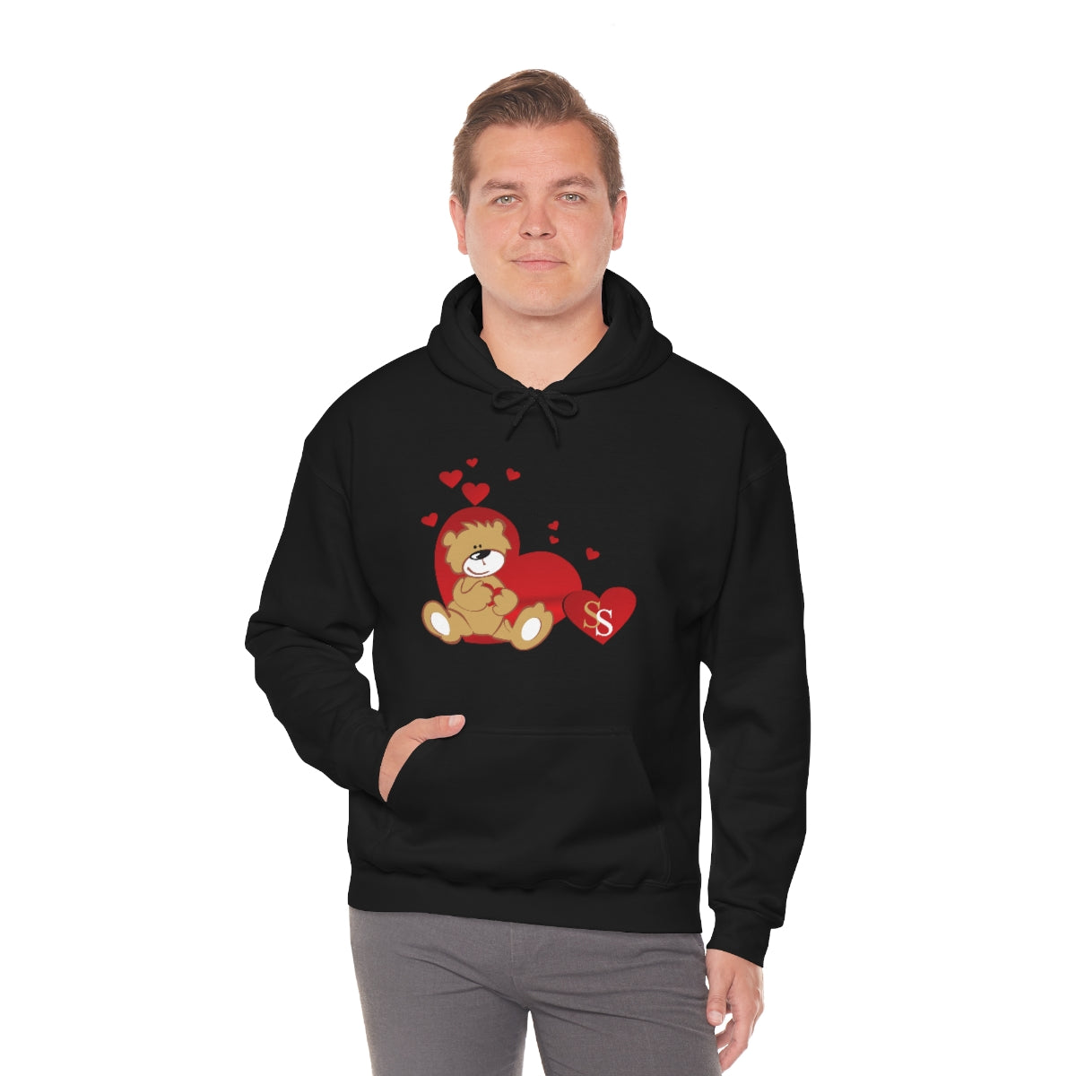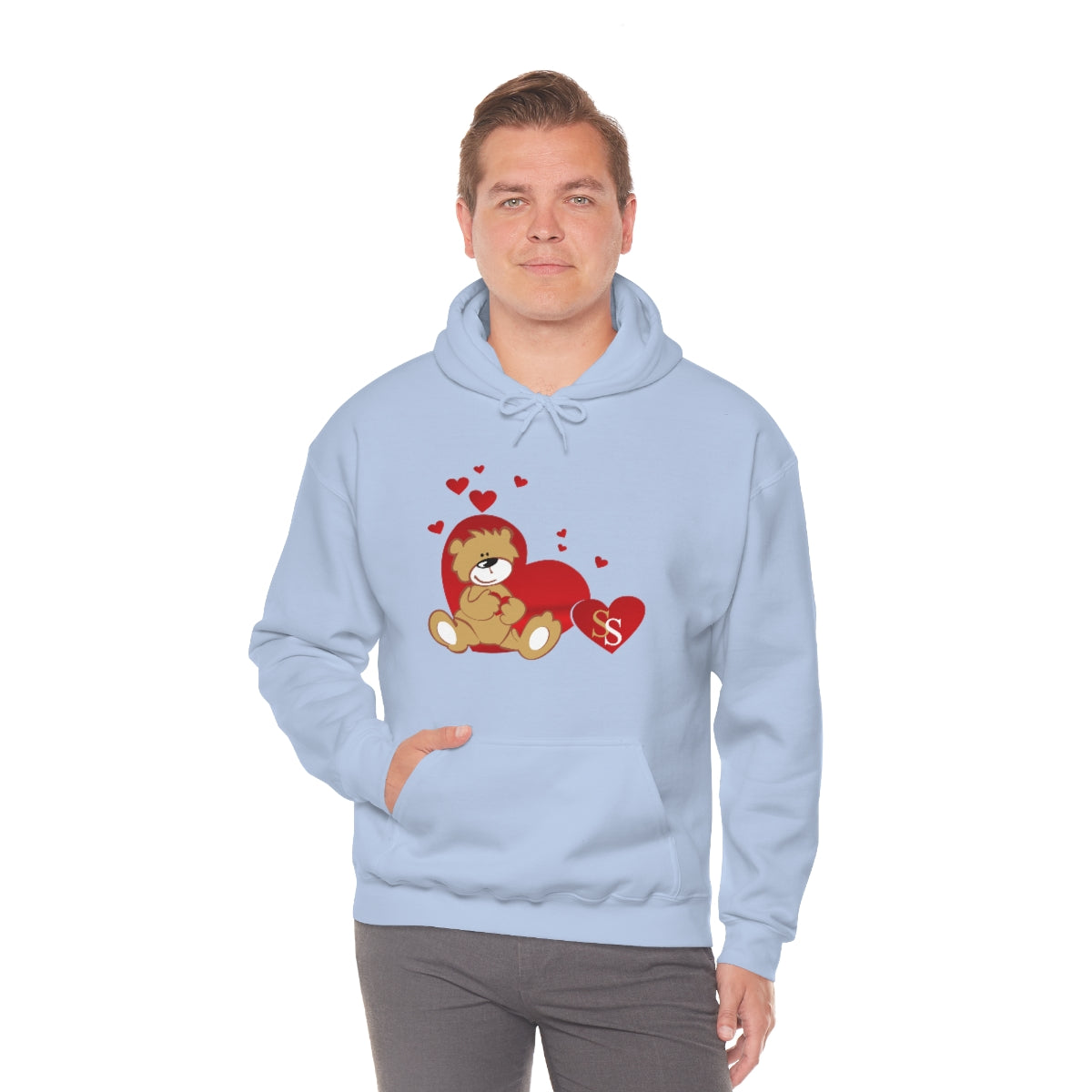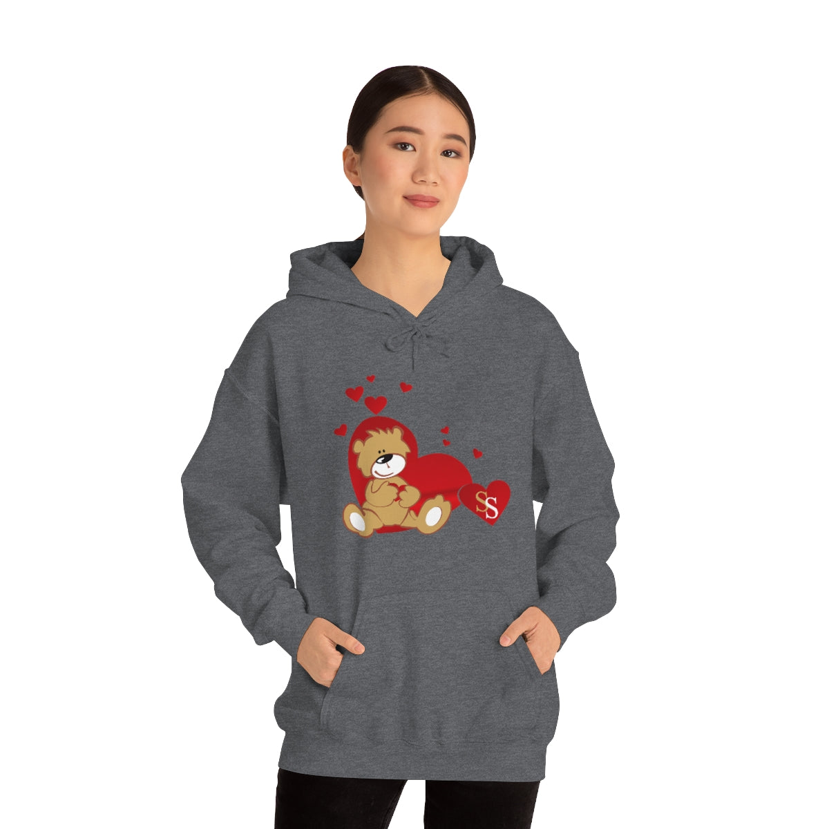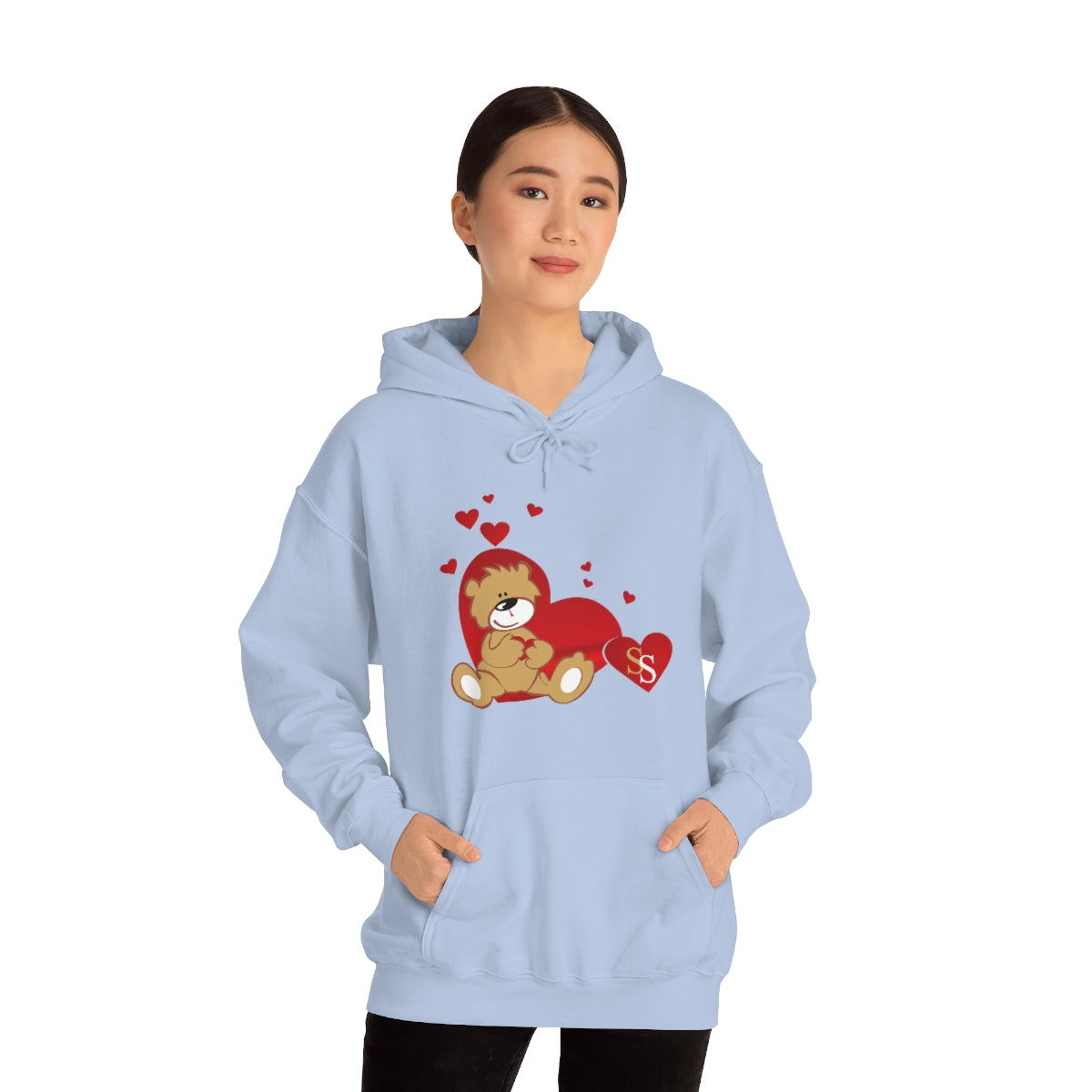 This unisex heavy blend hooded sweatshirt is relaxation itself. Made with a thick blend of cotton and polyester, it feels plush, soft and warm, a perfect choice for any cold day. In the front, the spacious kangaroo pocket adds daily practicality while the hood's drawstring is the same color as the base sweater for extra style points.