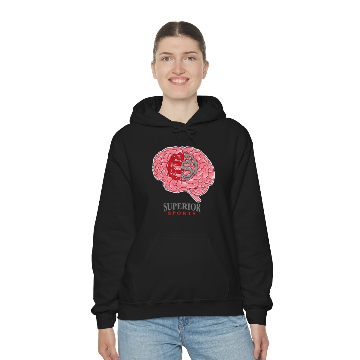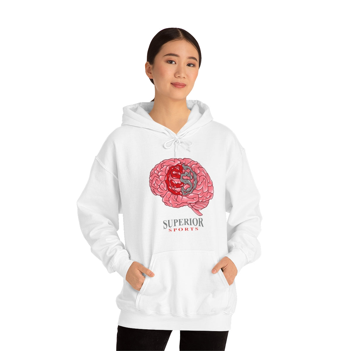 This unisex heavy blend hooded sweatshirt is relaxation itself. Made with a thick blend of cotton and polyester, it feels plush, soft and warm, a perfect choice for any cold day. In the front, the spacious kangaroo pocket adds daily practicality while the hood's drawstring is the same color as the base sweater for extra style points.